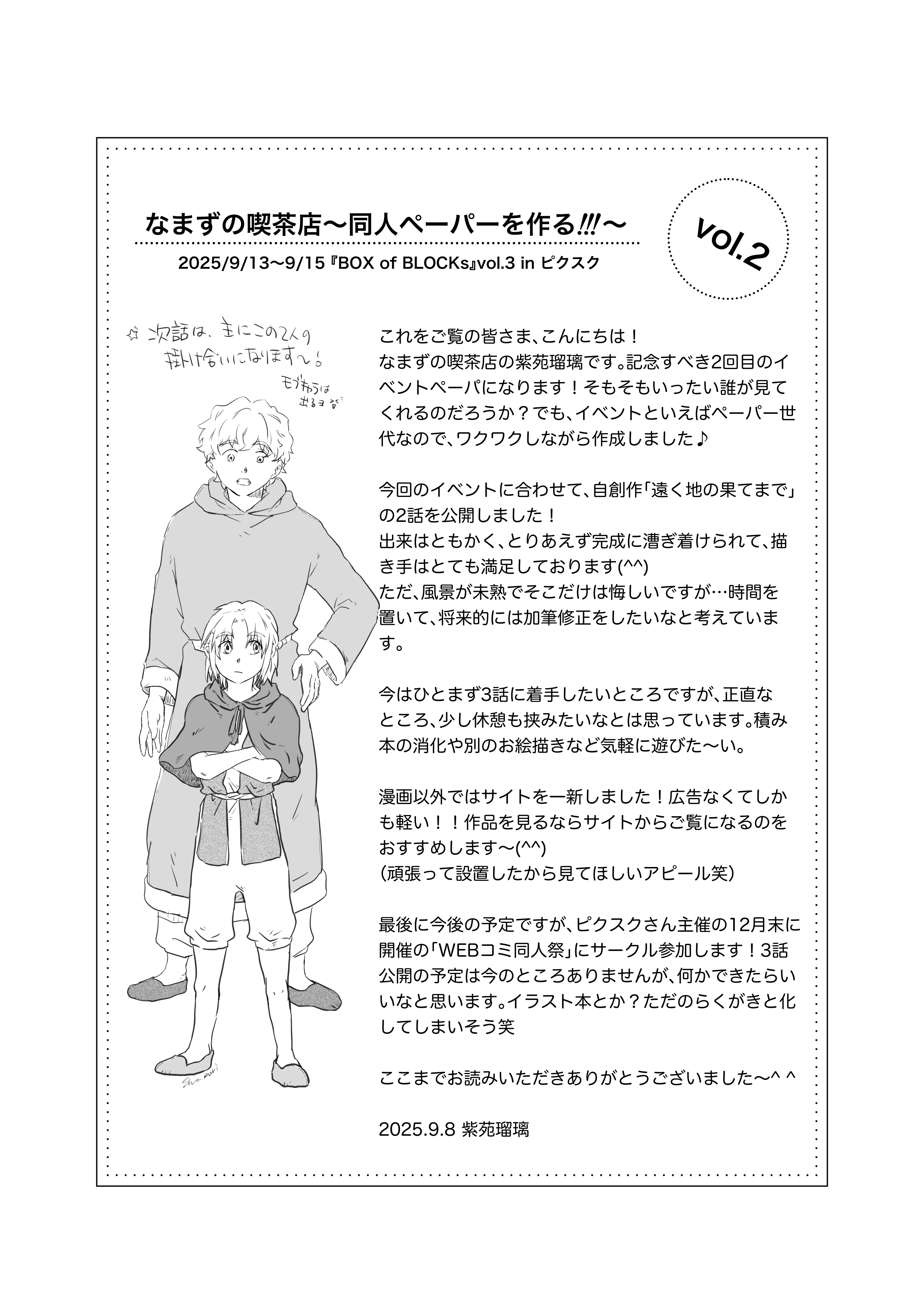 わたしの展示数は雀の涙ほどと少ないですが、創作本編の2話とペーパーをこのイベントに合わせて公開します!